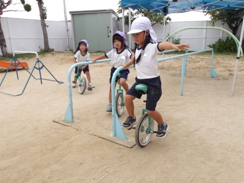 たんぽぽ組やもも組の前もつかわせてもらい、何度も繰り返し挑戦したり、友達と一緒に遊びながら色々と新しい技にも挑戦している姿にビックリです!