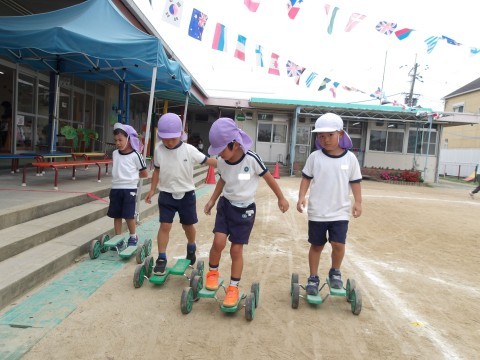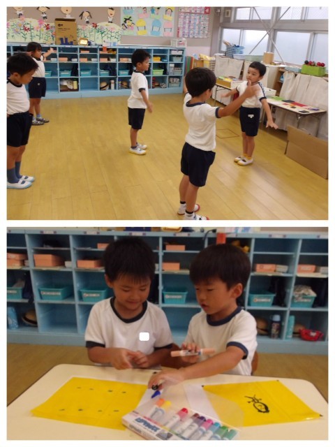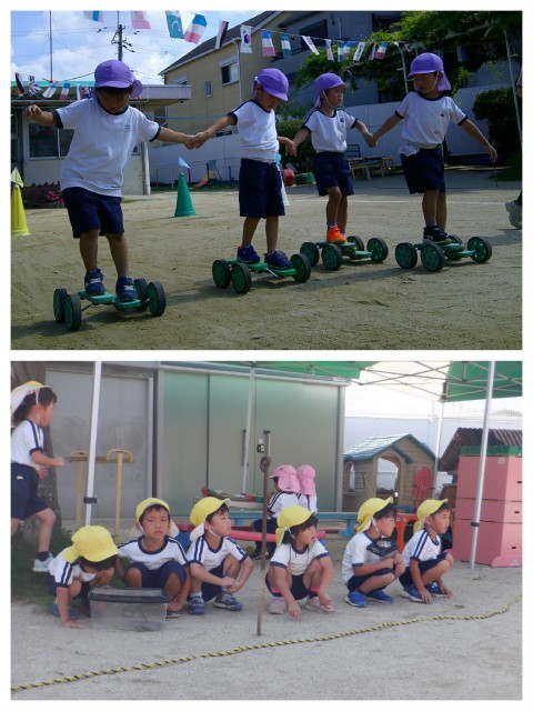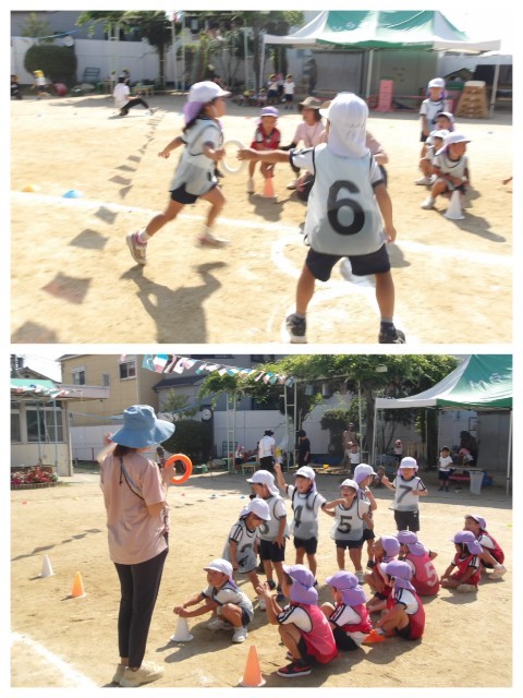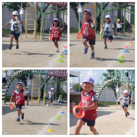 今日は運動会で頑張っている自分をつくったり、チャレンジやリレーをして過ごしました。お互いの姿が刺激になって、「すごいやん!」「今の惜しかったなあ!」と声を掛け合いながら頑張っていました。また来週、元気に登園してください♪