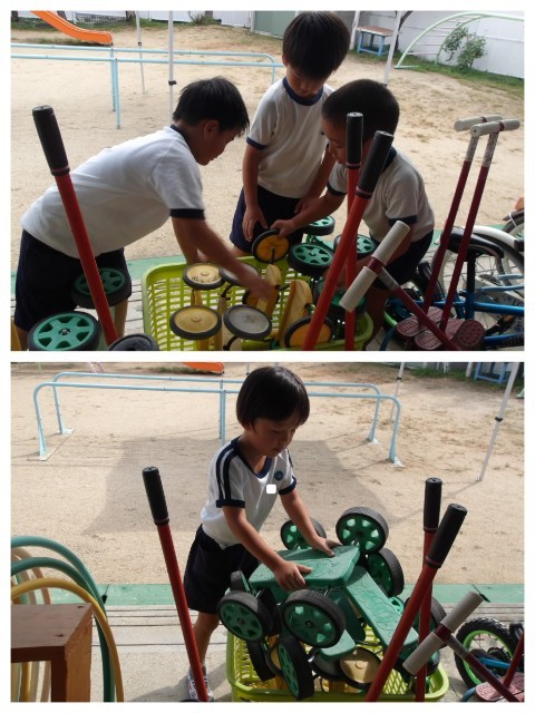 「チャレンジって楽しい!」と、できるようになった喜びも重なって子ども達から嬉しい声も聞こえてきました。遊んだ後のお片付けもバッチリ!少し大変なところは自然と友達が集まって力を合わせていました(^^)