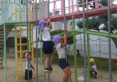 久しぶりの幼稚園で子どもたちは朝から元気いっぱい遊びました。