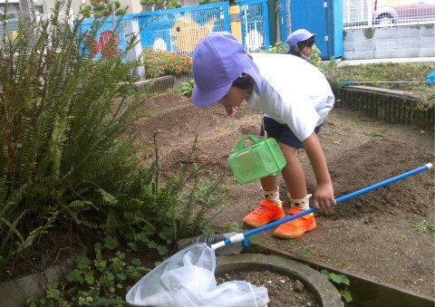 園庭で体を動かしたり,畑で虫を捕まえたりと思い思いのやりたいことに夢中になりました。