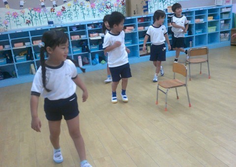 運動会の親子競技で行う「台風の目」をみんなでやってみました。
