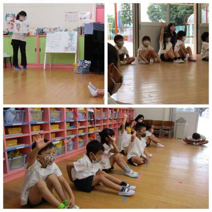 雨の日や、30度以上の暑い気温の日もある日々が続いています。熱中症の話を子どもたちにすると、「帽子かぶらなあかん!」「お茶を飲まないといけないよ。」「汗かいたら着替えないと」「強い体になっとかな」「しっかり食べる・寝る・運動するやで」と子どもたちの知っていることを教えてくれました。自分たちで、水分補給や衣服を清潔にすることを心掛けるようになってほしいなと思います。
