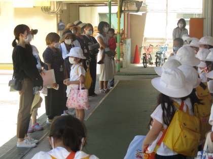 お家のお引越しのため,今日で退園するお友だちをみんなでお見送りしました。