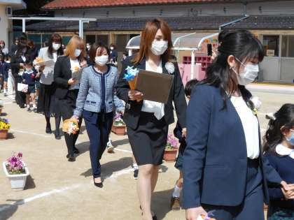 修了式の後,保護者さんと一緒に花道を通っていきました。