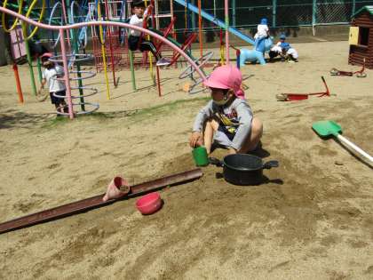 今日はとってもいいお天気!うさぎ組のお友達ができてきたり,年長の友達と遊んだり,いろいろな子とかかわって遊ぶようになってきています。うさぎ組の子がこけて泣いていると,年長の子達が助けにきてくれました。手をとって「手当て,してあげて」と先生のところまで連れてきてくれました。やさしい気持ちが育ってくれて,うれしく思います💛