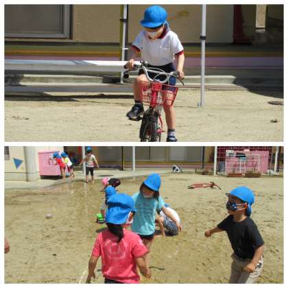 今日はとっても良いお天気で園庭ではどろんこ遊びを楽しむお友達も(^▽^)/