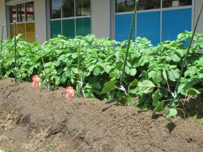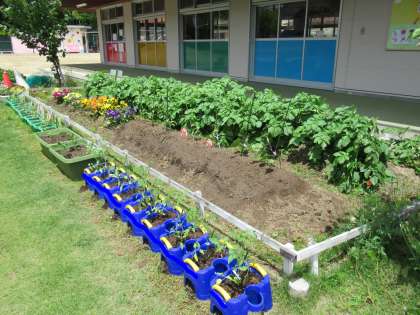 幼稚園の畑にも夏野菜が植えられました。