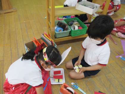 雨の日は・・☆(そら組) 公開日 2021/05/19 更新日 2021/05/19 保育の様子 お店屋さんごっこにヒーローごっこと盛り上がっています☆ 明日は,午後保育です♪雨が少しでも上がれば外遊びを楽しみたいと思いますので、泥んこの服も持ってきておいてくださいね!