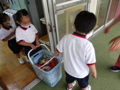 今日のお当番さんです。重い弁当も二人で一生懸命運んでくれました。よくがんばったね☆