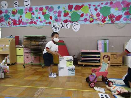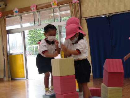 音遊びがおもしろかったようで自発の時間にも,色々なものの音を試している子がいました。友達と一緒にリズムに合わせてトントンしていましたよ♪