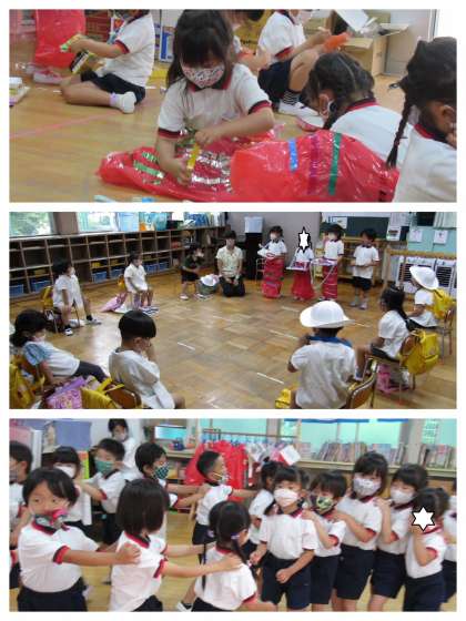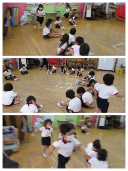 初めて「ハンカチ落とし」の遊びをしたり、ドーナツ屋さんはドーナツが焼きあがったので、うさぎ組に見せにいっていましたよ(^▽^)/