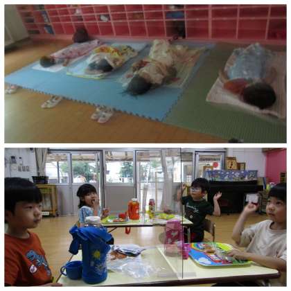 今日は、お昼寝の後、おやつを食べて、それぞれ好きな遊びを楽しみました。