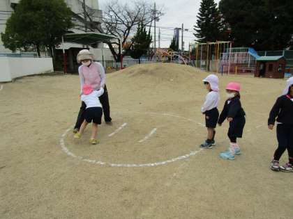 子ども達は「だるまさんがころんだ」も最近はよく遊んでいますよ!今日は先生と相撲も楽しみました☆