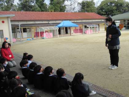 その後,出火したから園庭に避難しなさいとの放送を聞き,口をハンカチで押さえながら静かに避難することができました。