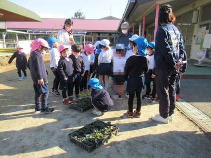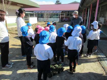 今年も,苗を扱っているおじさんが,幼稚園のみんなにいちごの苗を持ってきてくれましたよ!