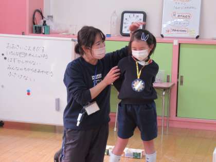 第一回こま回し大会!(そら組) 公開日 2022/01/21 更新日 2022/01/21 保育の様子 いよいよ待ちに待ったこま回し大会! 練習を積み重ねてきた子や、回せなくて心が折れそうになった子も繰り返し練習し頑張ってきました!まずは、グループの中で一番長く回った子の勝ちです☆ 普段は回せるのに惜しくも回らなかった子や、初めて回せた子など悔しさや嬉しさが表情から伝わってきました☆ さあ次回のメダルは誰の手に・・☆