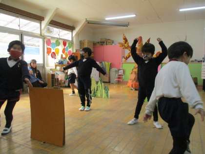 外でたくさん遊んだ後は、劇遊びをしましたよ♪