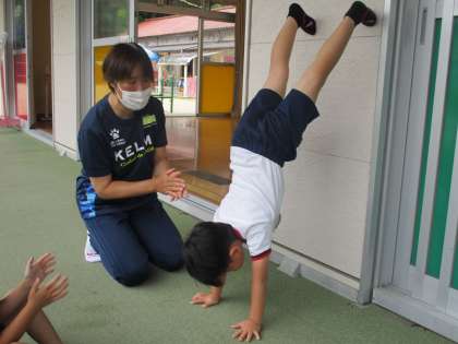 今日は子供クラブの体育がありました。逆立ちの練習や,公差大縄など難しい遊びも教えてもらいました。できるかな?と思いながらチャレンジしていましたよ!また保育でもやっていきたいと思います。ジャガイモ堀りの色塗りも今日はコンテで行いましたよ。「おもしろい!」と夢中になって指でのばしていました。