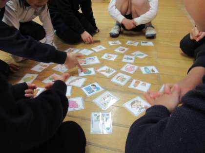 すると「あれ?やっぱり違った。」と絵札を戻したり、「それはこうやったんじゃない?」と友達が教えてくれたりして再確認しながら楽しむことができました。