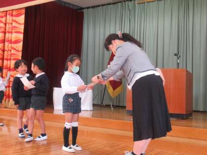 市役所で展示されていた「国際図画交流展」の作品が戻ってきましたので、表彰を行いました。