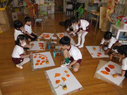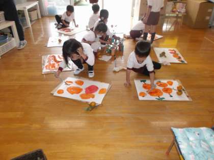 「葉っぱ描く!」「木描く!」と楽しそうに描いていました。