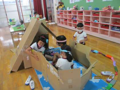 そこへ、大きな段ボールが登場!どうやらおうちを作るようです。