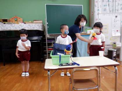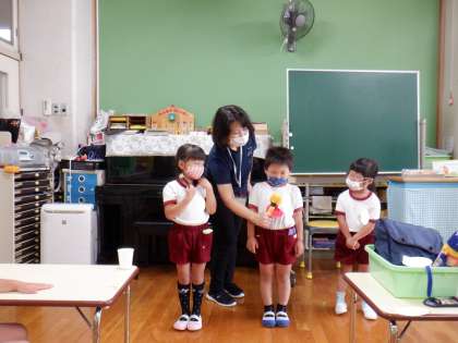 毎日お友達の前で自分の名前を言う練習をしています。恥ずかしがっていたお友達も、大きな声で言えるようになってきました。