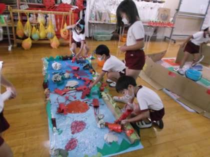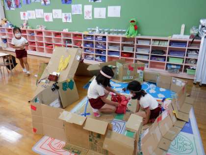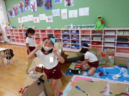 子どもたちは,毎日ごっこ遊びをしながら,遊びがより楽しくなるように自分たちで考え,必要なものをつくるなど工夫しながら,遊びを発展させています。