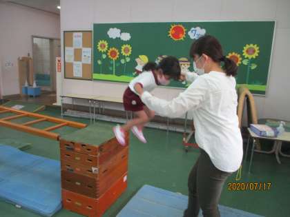 まだ少し、高いところが怖かったり,動きが難しいなと感じるところもあるようですが、「できるようになりたい」と意欲的に取り組んでいました。