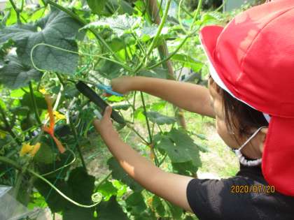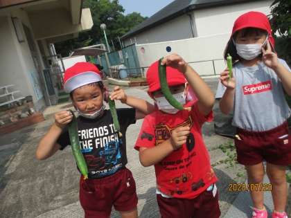 休み明けだったので野菜が大きくなっていました。みんなで収穫しました。おうちでおいしく食べたくださいね。