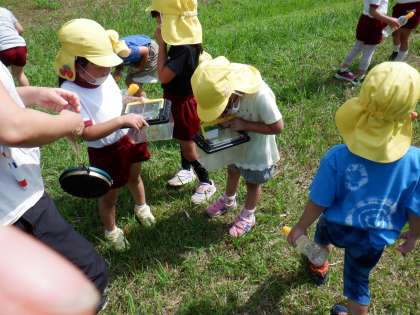 最初は怖がっていた子も、お友達が触っているのを見て、触ってみたくなってきました。今では自分で捕まえられるようになってきました。