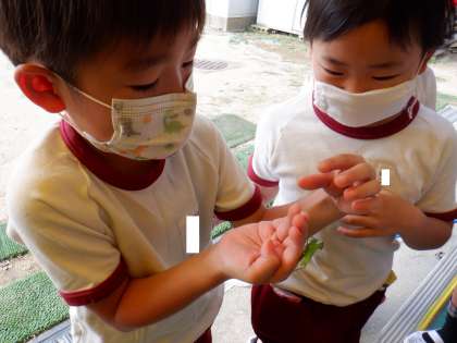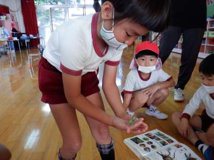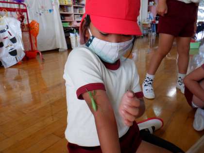 「お腹が大きいから,きっとお母さんのカマキリだね」