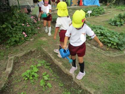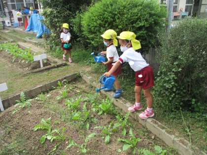 水やりをして、大根やかぶが大きくなるのを楽しみにしています。