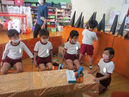 絵を描いたことで、よりイメージが膨らんだようで、ごっこ遊びもさらに盛り上がっていました。