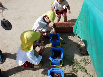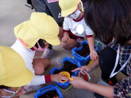 大根やかぶを植えたので、はつか大根の種は「どんな種なんだろう?」と興味津々の子どもたち。