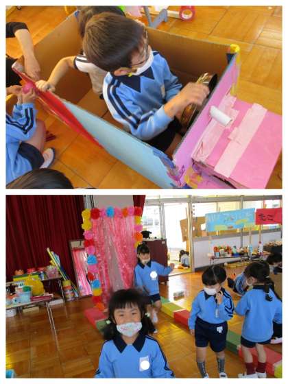 11月10日(火)つくってあそぼうまで、あと何日? 公開日 2020/11/10 更新日 2020/11/10 こんなことしたよ♪♪ つくってあそぼうに向けて毎日頑張っている子ども達! 「あと何回寝たらつくって遊ぼう?」と楽しみにしています。 少しずつ当日が近づいてきて、「仕上げをしていこう!」と足りないものを作り足したり、補修したりと忙しそうです。どのコーナーでも生活の中で経験したことがあちこちで活かされています。子ども達はよく見ているなぁと感心してしまいます。当日までお楽しみに!