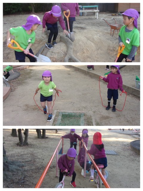 今日も、友達や先生と好きな場所で好きな遊びを楽しみました。
