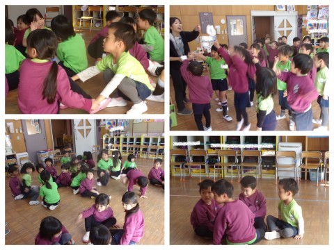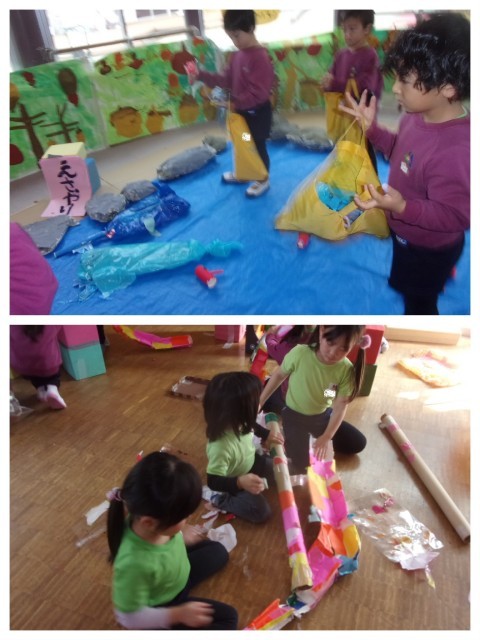 明日は3歳児の公開保育がありますので、4・5歳児は午前保育です。