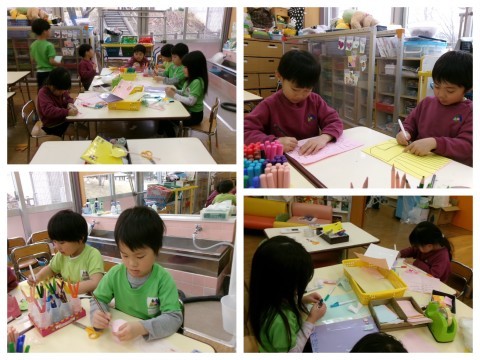 今日も5歳児の子どもたちを中心に「シール帳づくり」が大盛り上がりです!