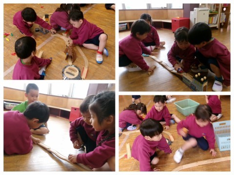 シャボン玉を追いかけたり、電車ごっこをしたりと、