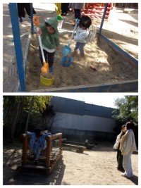まずは「ロンドン橋」でふれあい遊び。「さあ、どうしましょ♪」でつかまってしまう、くり返しのある遊びが、子どもたちにとっては心地よく、楽しかったですね。