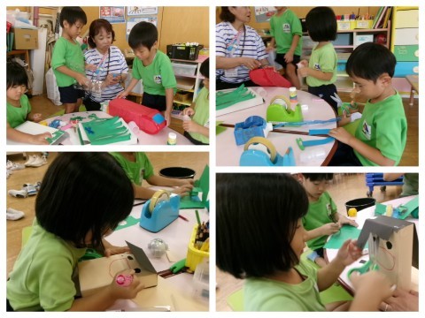 おやつの後は物づくりを楽しんでいました。