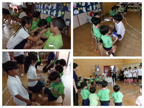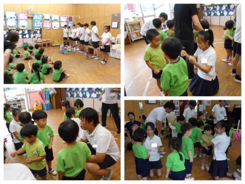 まだまだじゃんけんが難しい年少児に,一つずつ優しく説明してくれていましたよ。
