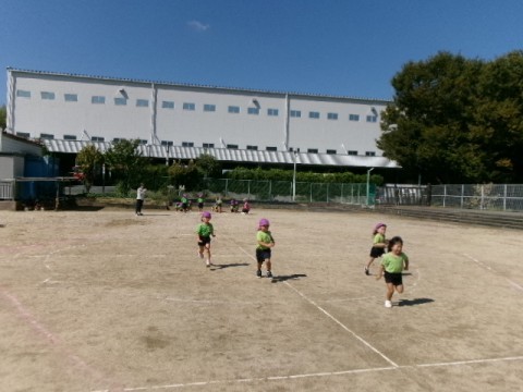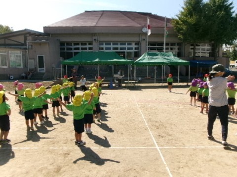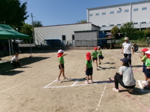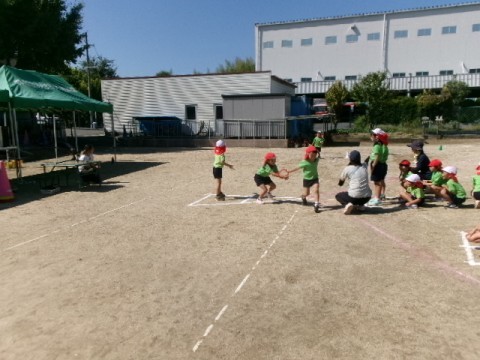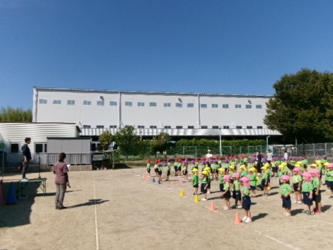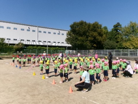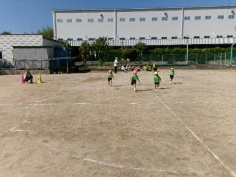 入場行進や大地っこ体操,かけっこやリレーをしました。