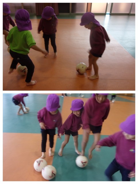 ボールをキャッチしたりキックりしたり、喜んで体を動かしていました!