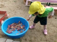 今日も戸外でどんぐりや落ち葉を使って遊びました。