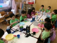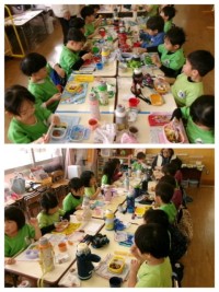 今日は、3歳児が公開保育だったので、4・5歳児だけでお弁当を食べました。