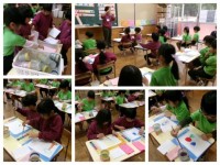 折り紙で服を折って,顔や手足は画用紙でつくりました☆