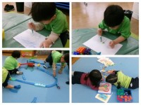 今日はお部屋で物づくりや塗り絵、ままごとや人形遊びなど友達と好きな遊びを楽しみました。